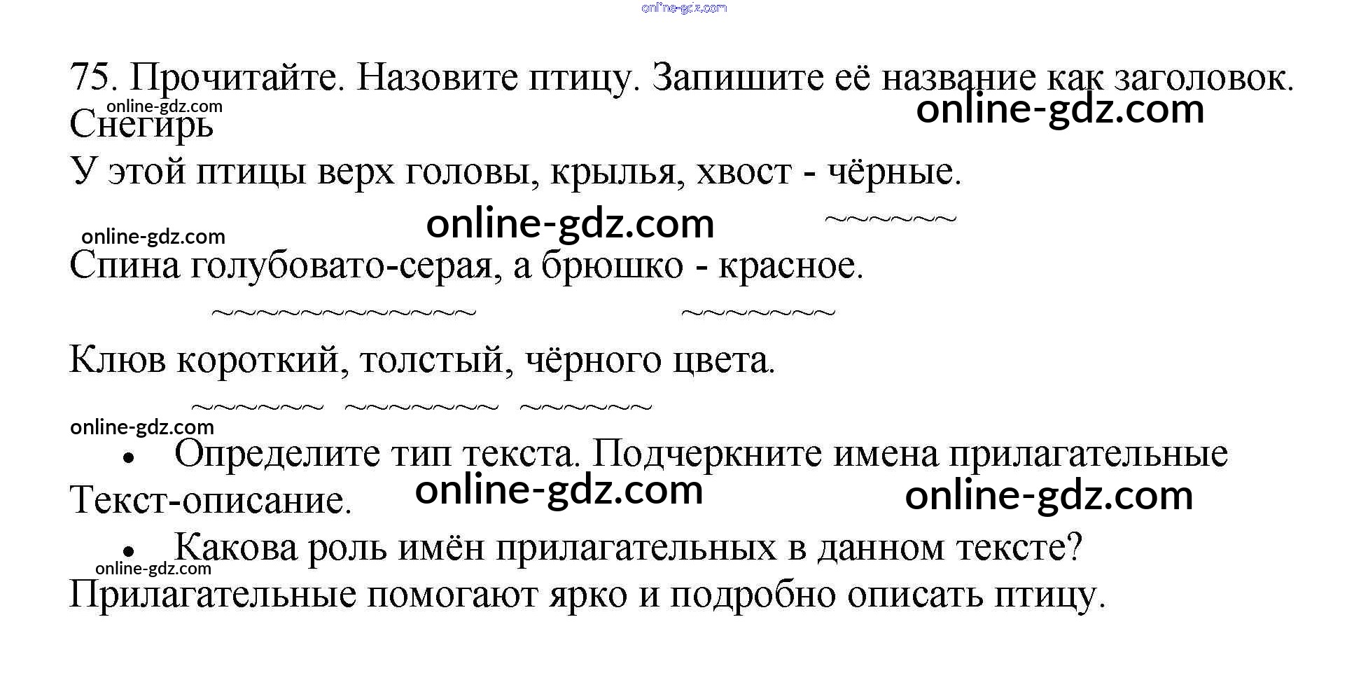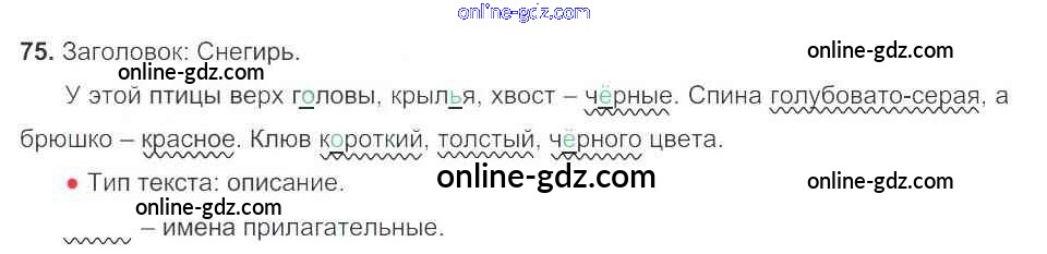 Готовые домашние задания по Русскому языку за 3 класс Рабочая тетрадь Канакина Школа России 2012 - Часть 1. Упражнения 75