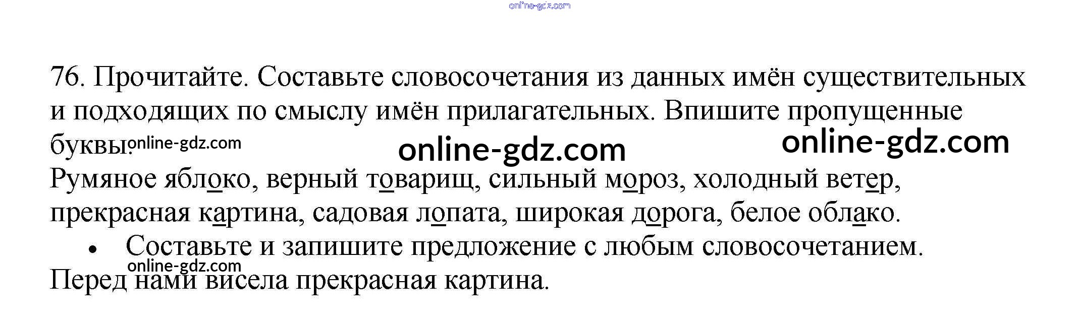 Готовые домашние задания по Русскому языку за 3 класс Рабочая тетрадь Канакина Школа России 2012 - Часть 1. Упражнения 76