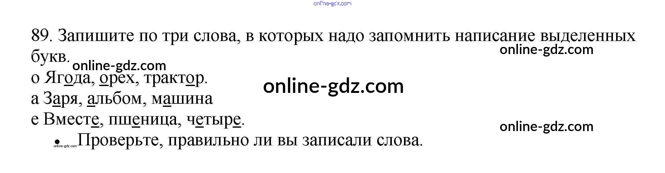 Готовые домашние задания по Русскому языку за 3 класс Рабочая тетрадь Канакина Школа России 2012 - Часть 1. Упражнения 89