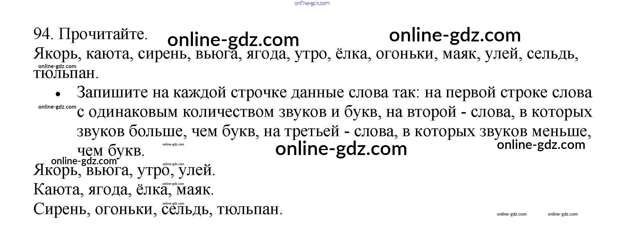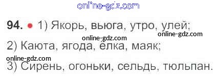 Готовые домашние задания по Русскому языку за 3 класс Рабочая тетрадь Канакина Школа России 2012 - Часть 1. Упражнения 94