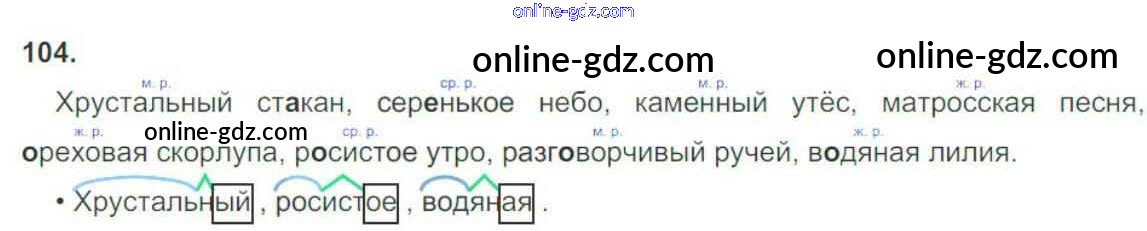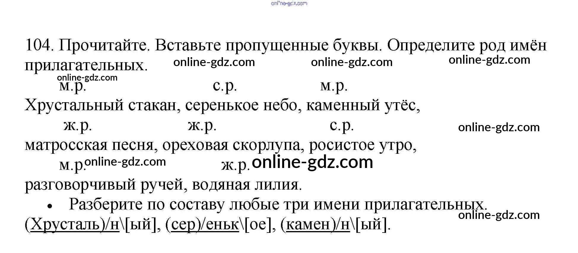 Готовые домашние задания по Русскому языку за 3 класс Рабочая тетрадь Канакина Школа России 2012 - Часть 2. Упражнения 104