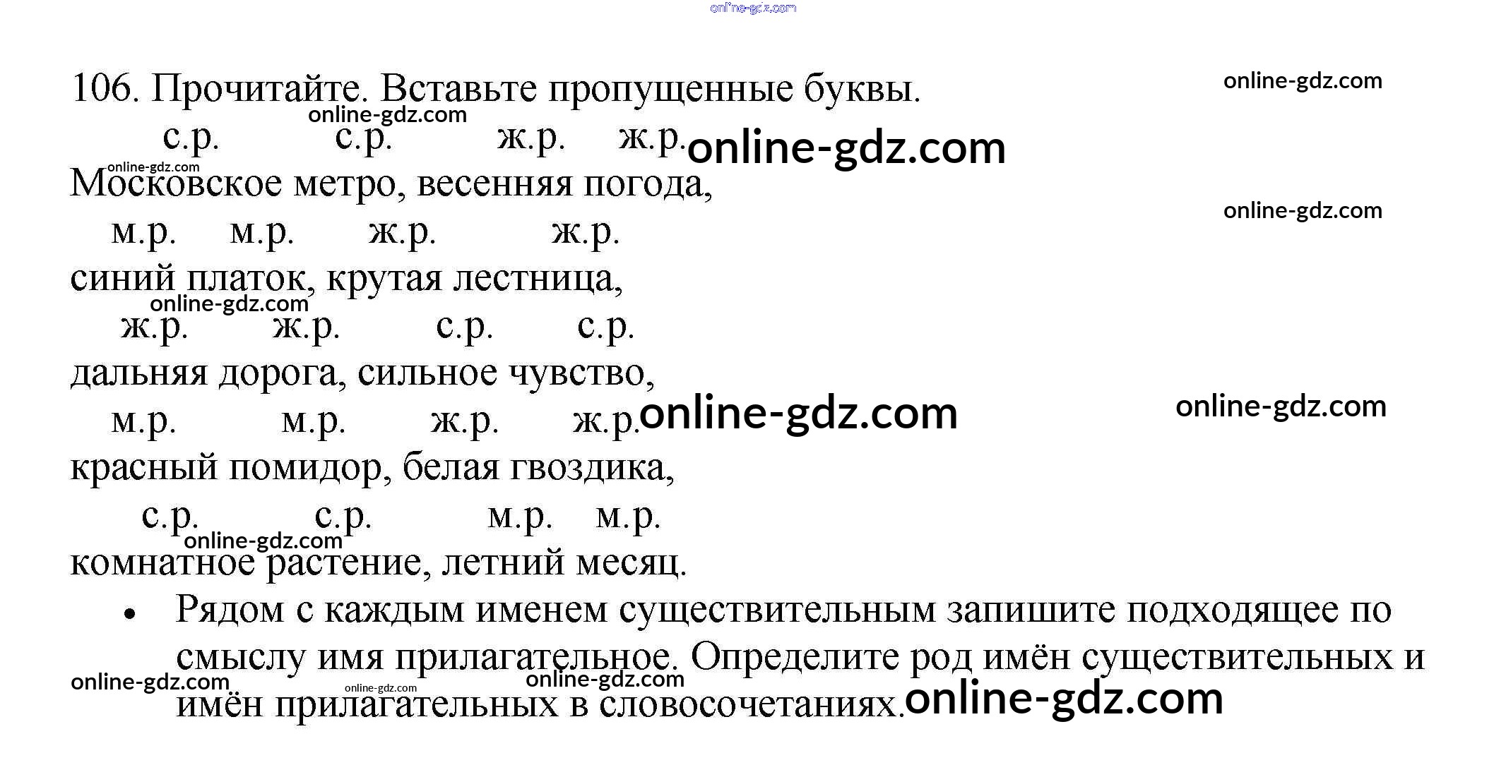 Готовые домашние задания по Русскому языку за 3 класс Рабочая тетрадь Канакина Школа России 2012 - Часть 2. Упражнения 106