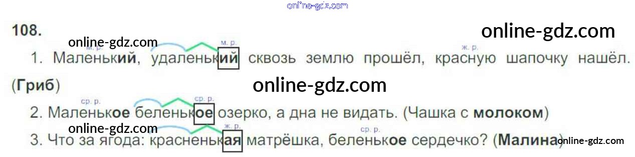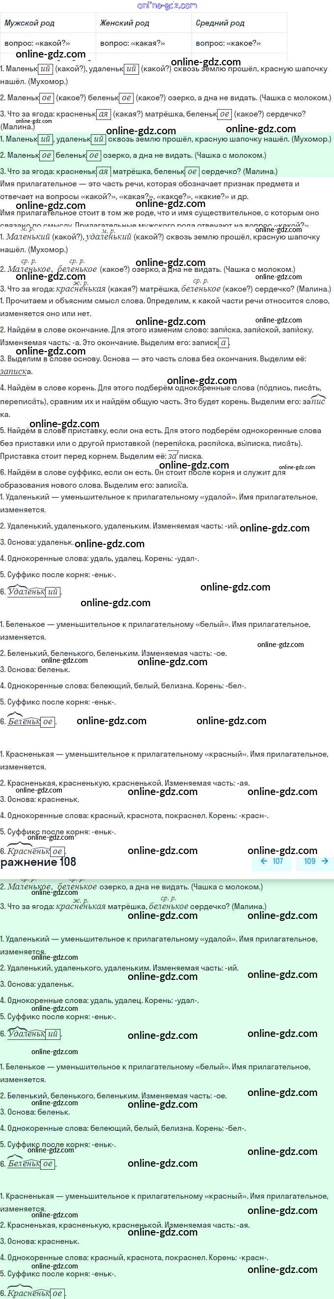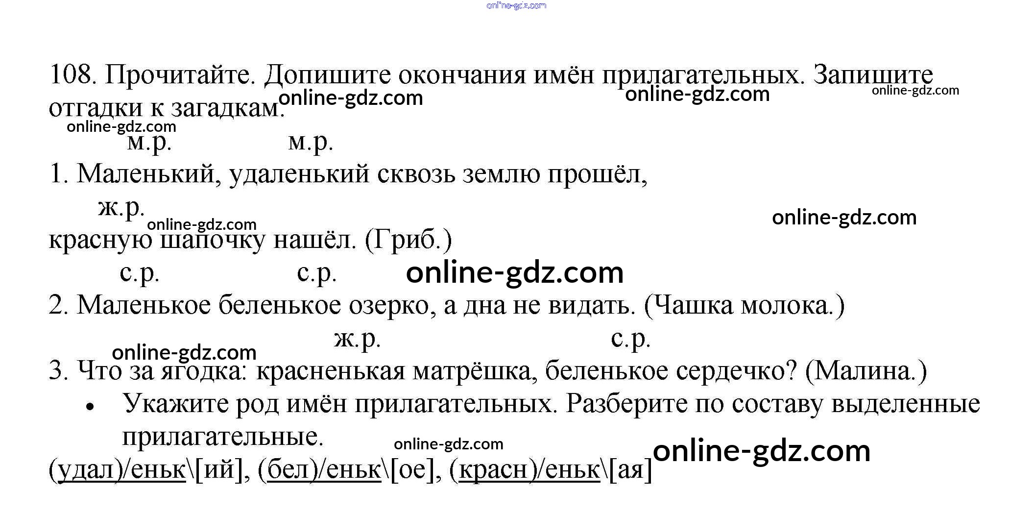 Готовые домашние задания по Русскому языку за 3 класс Рабочая тетрадь Канакина Школа России 2012 - Часть 2. Упражнения 108