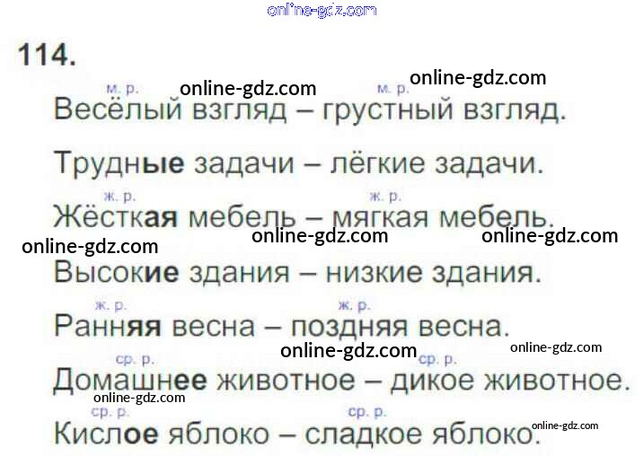 Готовые домашние задания по Русскому языку за 3 класс Рабочая тетрадь Канакина Школа России 2012 - Часть 2. Упражнения 114