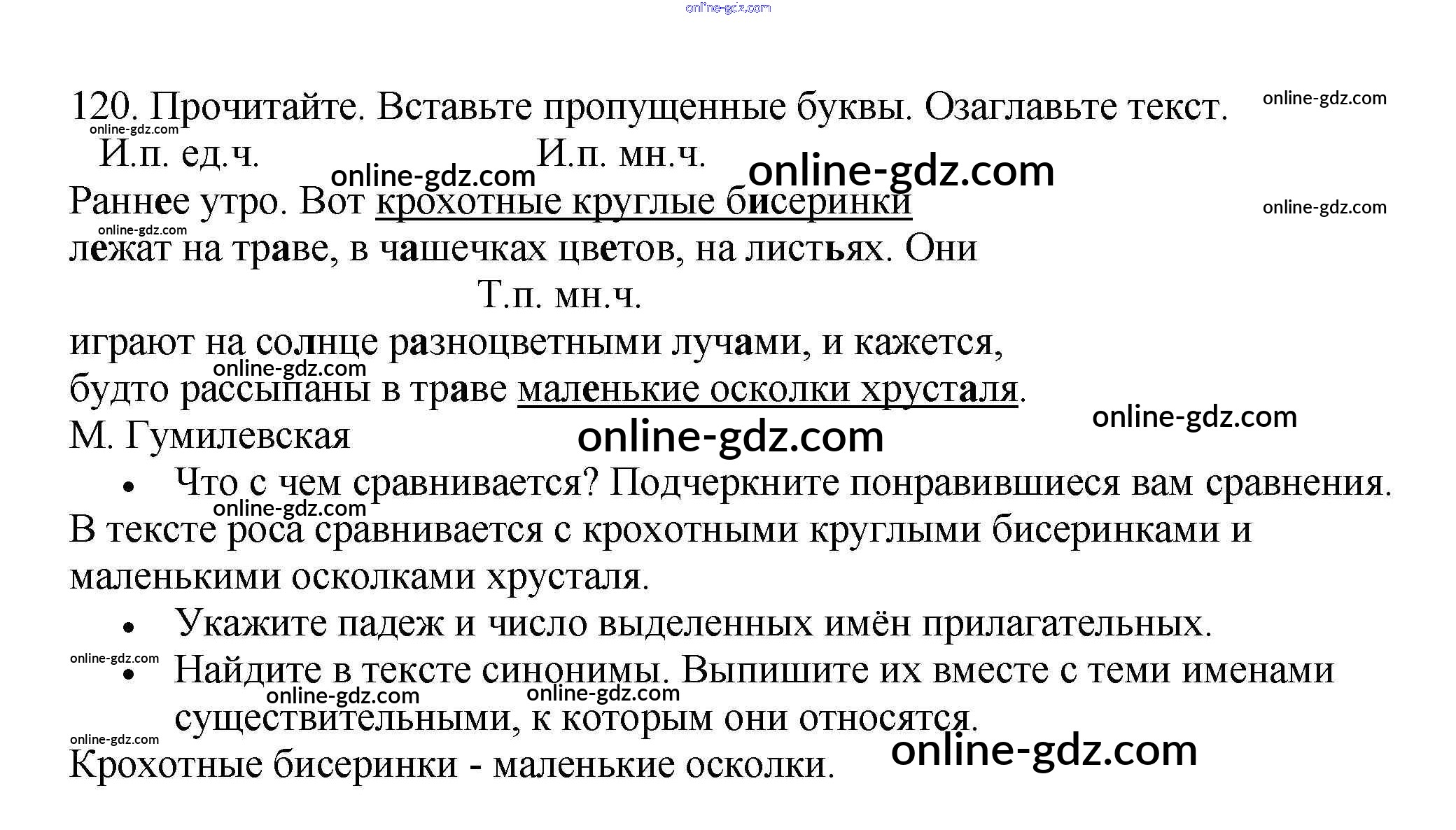 Готовые домашние задания по Русскому языку за 3 класс Рабочая тетрадь Канакина Школа России 2012 - Часть 2. Упражнения 120