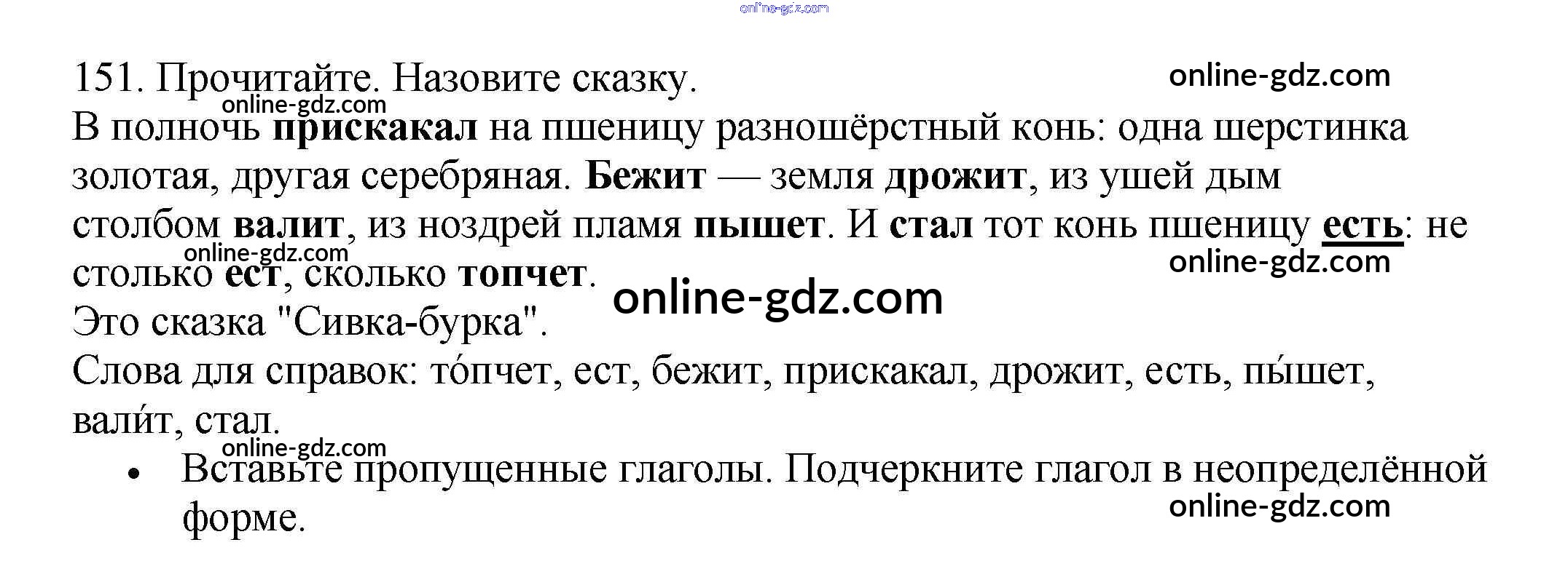 Готовые домашние задания по Русскому языку за 3 класс Рабочая тетрадь Канакина Школа России 2012 - Часть 2. Упражнения 151