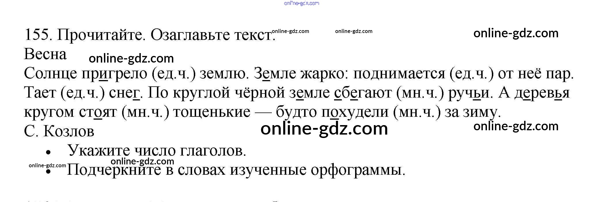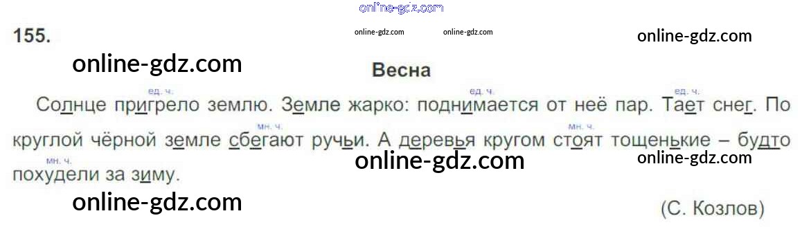 Готовые домашние задания по Русскому языку за 3 класс Рабочая тетрадь Канакина Школа России 2012 - Часть 2. Упражнения 155