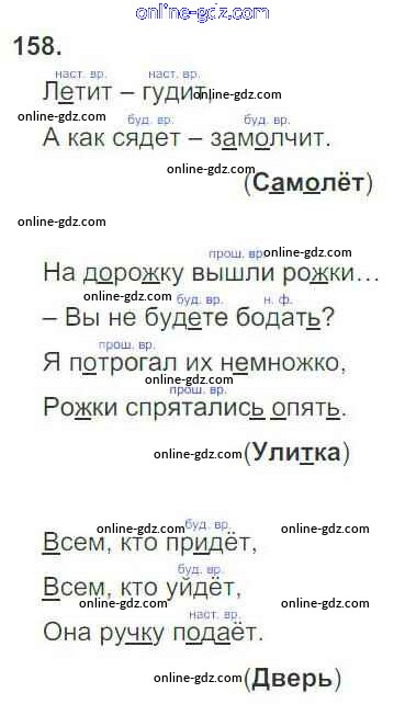 Готовые домашние задания по Русскому языку за 3 класс Рабочая тетрадь Канакина Школа России 2012 - Часть 2. Упражнения 158