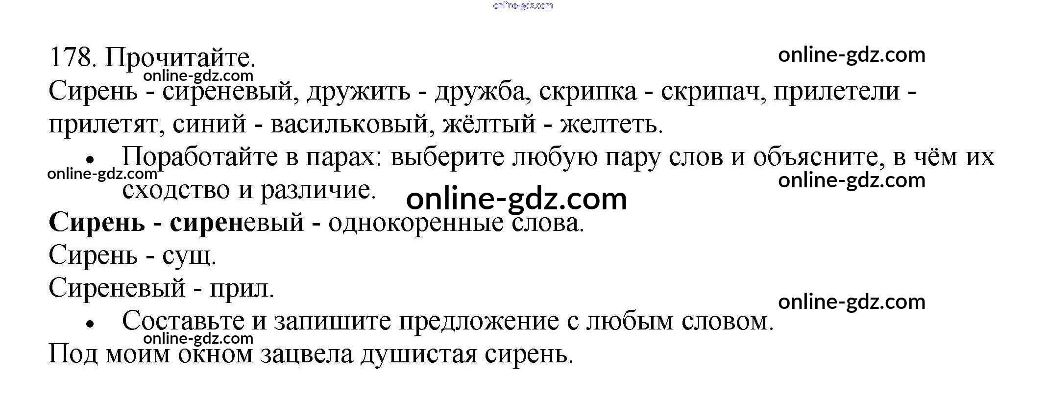 Готовые домашние задания по Русскому языку за 3 класс Рабочая тетрадь Канакина Школа России 2012 - Часть 2. Упражнения 178
