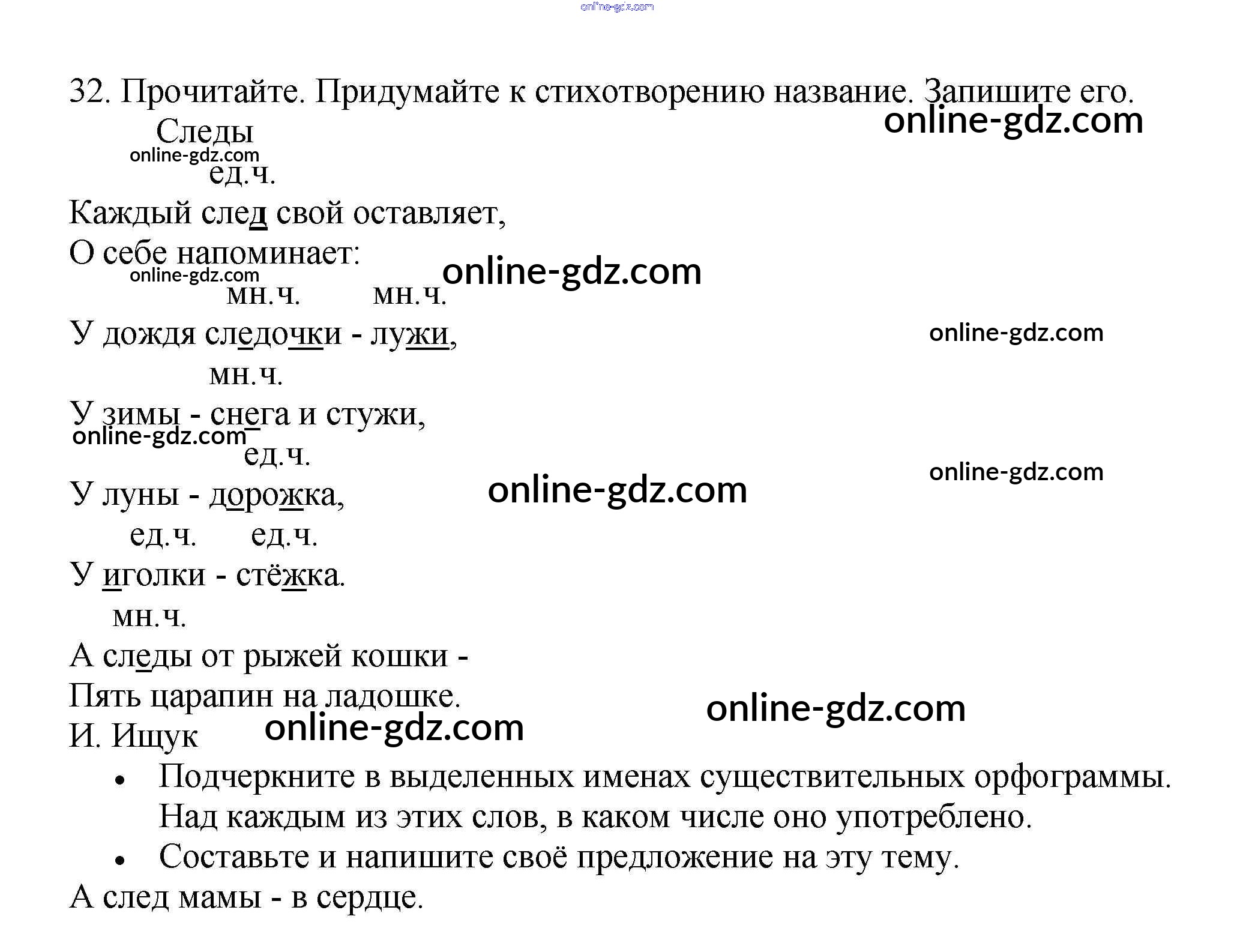 Готовые домашние задания по Русскому языку за 3 класс Рабочая тетрадь Канакина Школа России 2012 - Часть 2. Упражнения 32