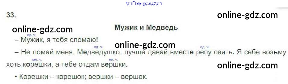 Готовые домашние задания по Русскому языку за 3 класс Рабочая тетрадь Канакина Школа России 2012 - Часть 2. Упражнения 33