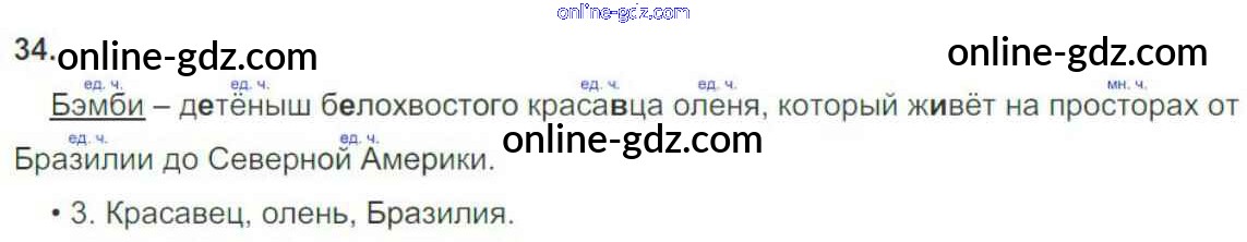 Готовые домашние задания по Русскому языку за 3 класс Рабочая тетрадь Канакина Школа России 2012 - Часть 2. Упражнения 34