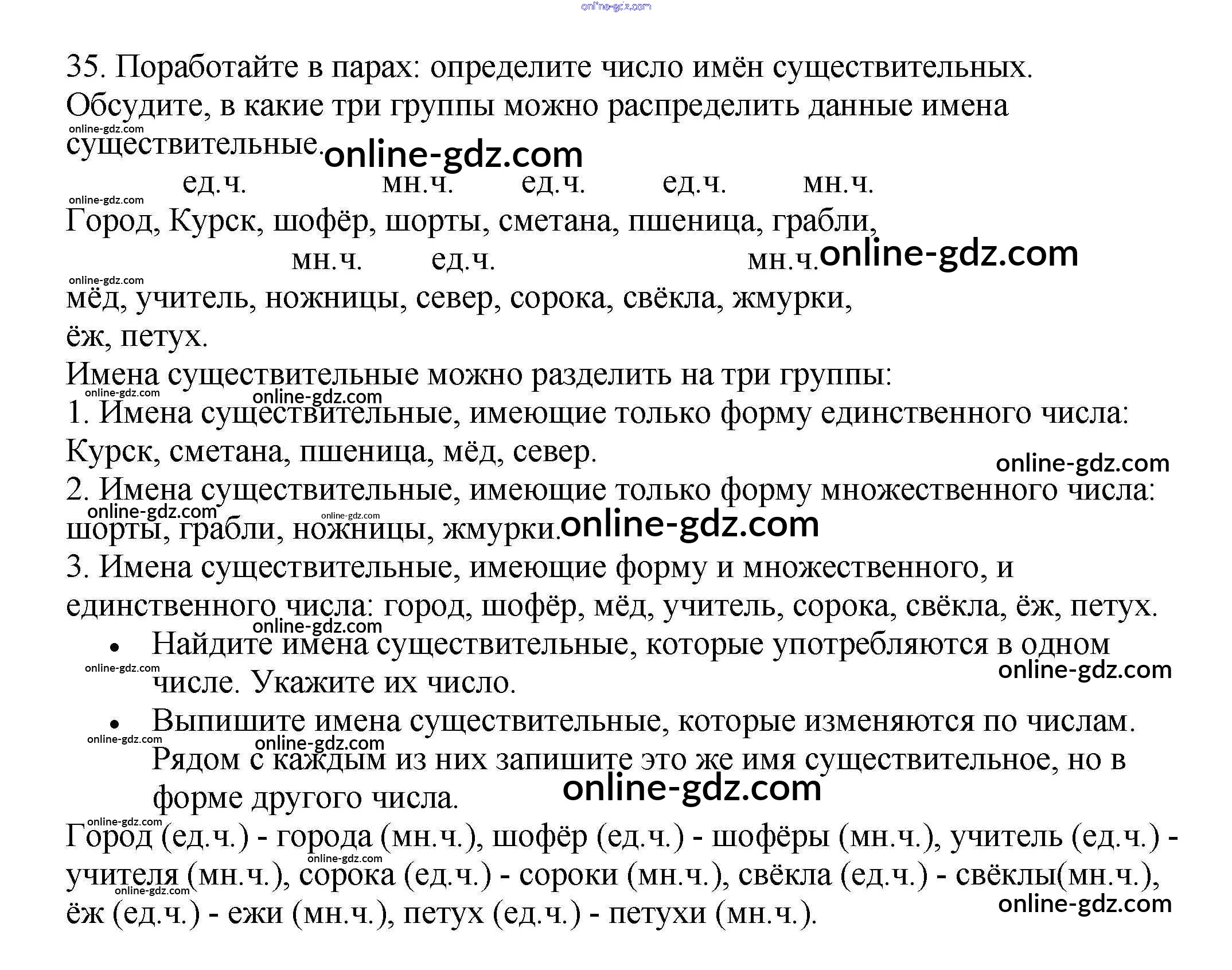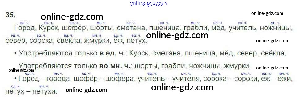 Готовые домашние задания по Русскому языку за 3 класс Рабочая тетрадь Канакина Школа России 2012 - Часть 2. Упражнения 35