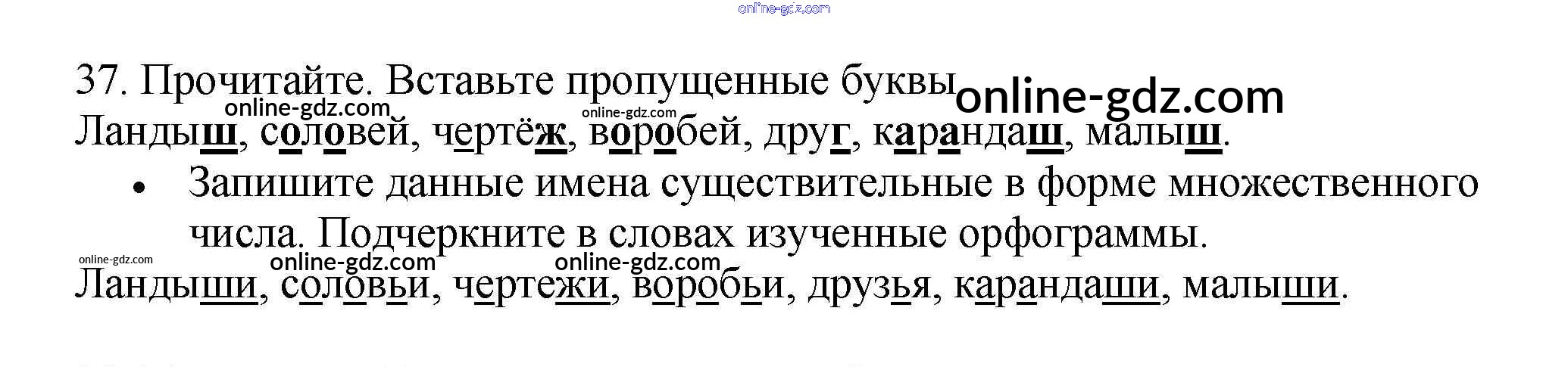 Готовые домашние задания по Русскому языку за 3 класс Рабочая тетрадь Канакина Школа России 2012 - Часть 2. Упражнения 37