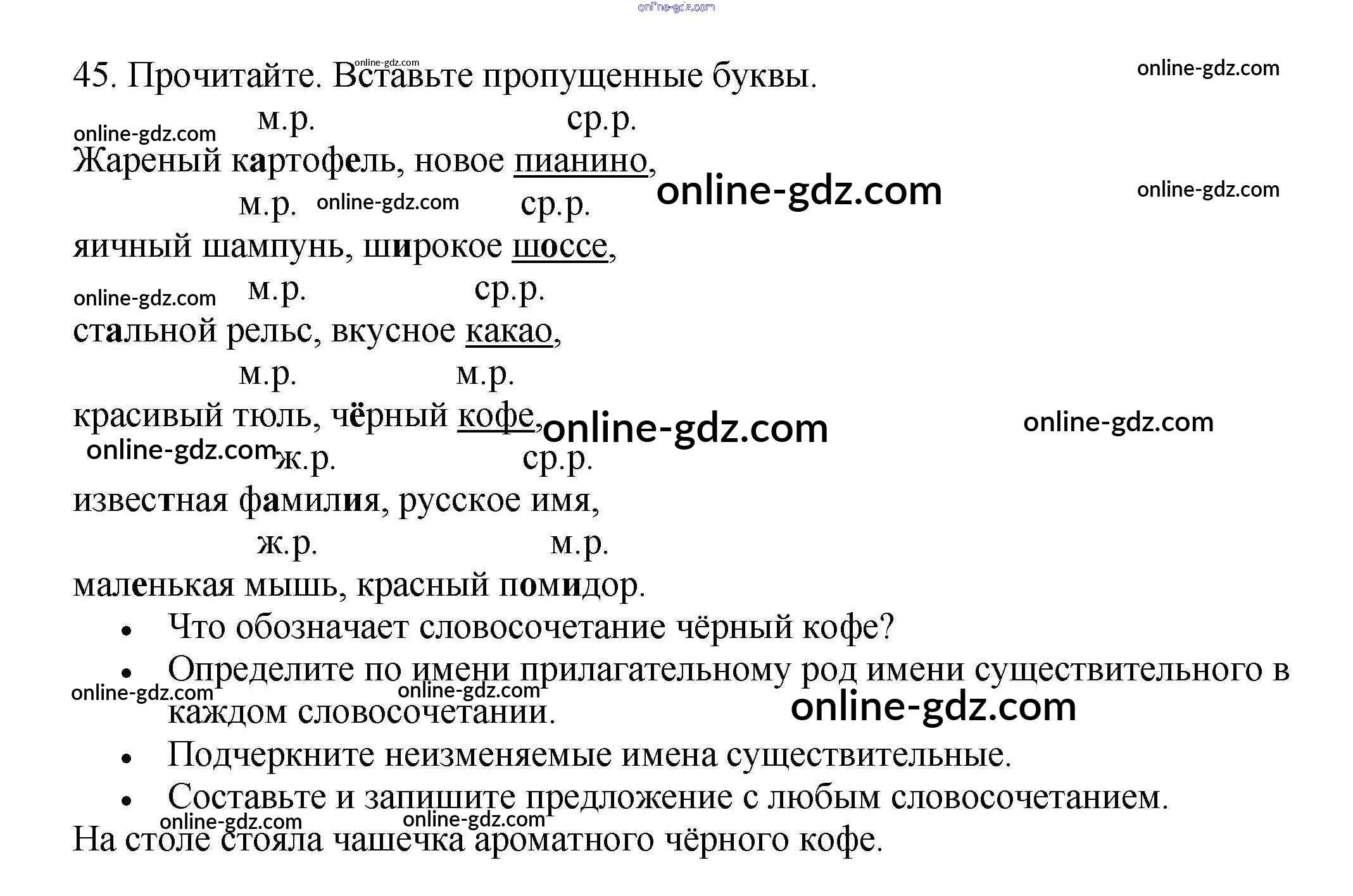 Готовые домашние задания по Русскому языку за 3 класс Рабочая тетрадь Канакина Школа России 2012 - Часть 2. Упражнения 45