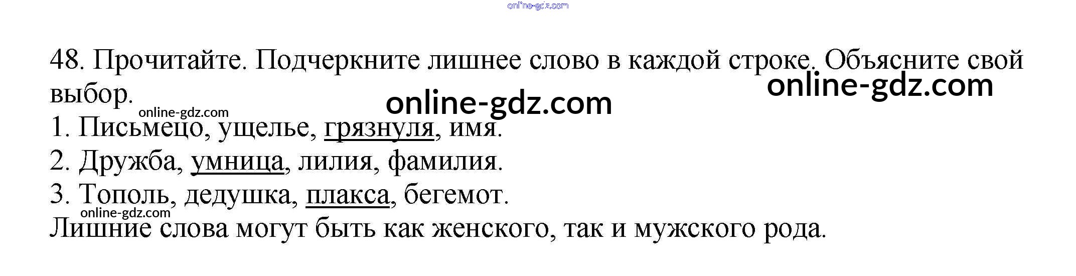 Готовые домашние задания по Русскому языку за 3 класс Рабочая тетрадь Канакина Школа России 2012 - Часть 2. Упражнения 48