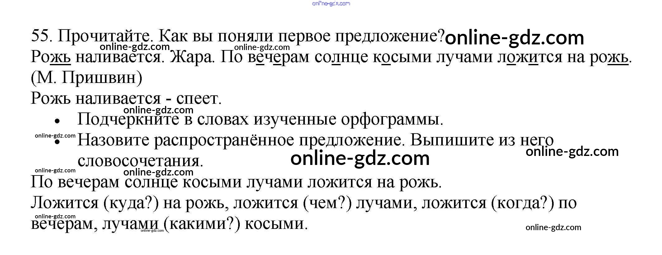 Готовые домашние задания по Русскому языку за 3 класс Рабочая тетрадь Канакина Школа России 2012 - Часть 2. Упражнения 55