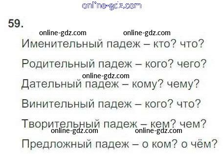 Готовые домашние задания по Русскому языку за 3 класс Рабочая тетрадь Канакина Школа России 2012 - Часть 2. Упражнения 59