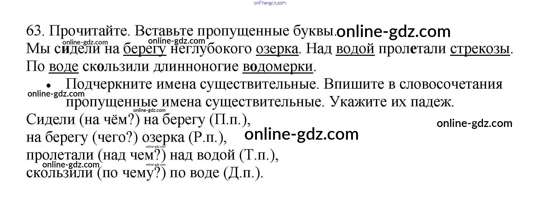 Готовые домашние задания по Русскому языку за 3 класс Рабочая тетрадь Канакина Школа России 2012 - Часть 2. Упражнения 63