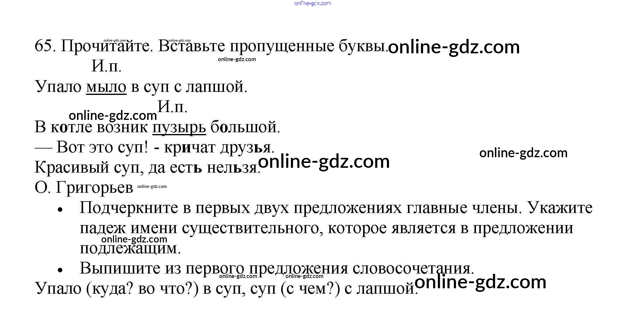 Готовые домашние задания по Русскому языку за 3 класс Рабочая тетрадь Канакина Школа России 2012 - Часть 2. Упражнения 65