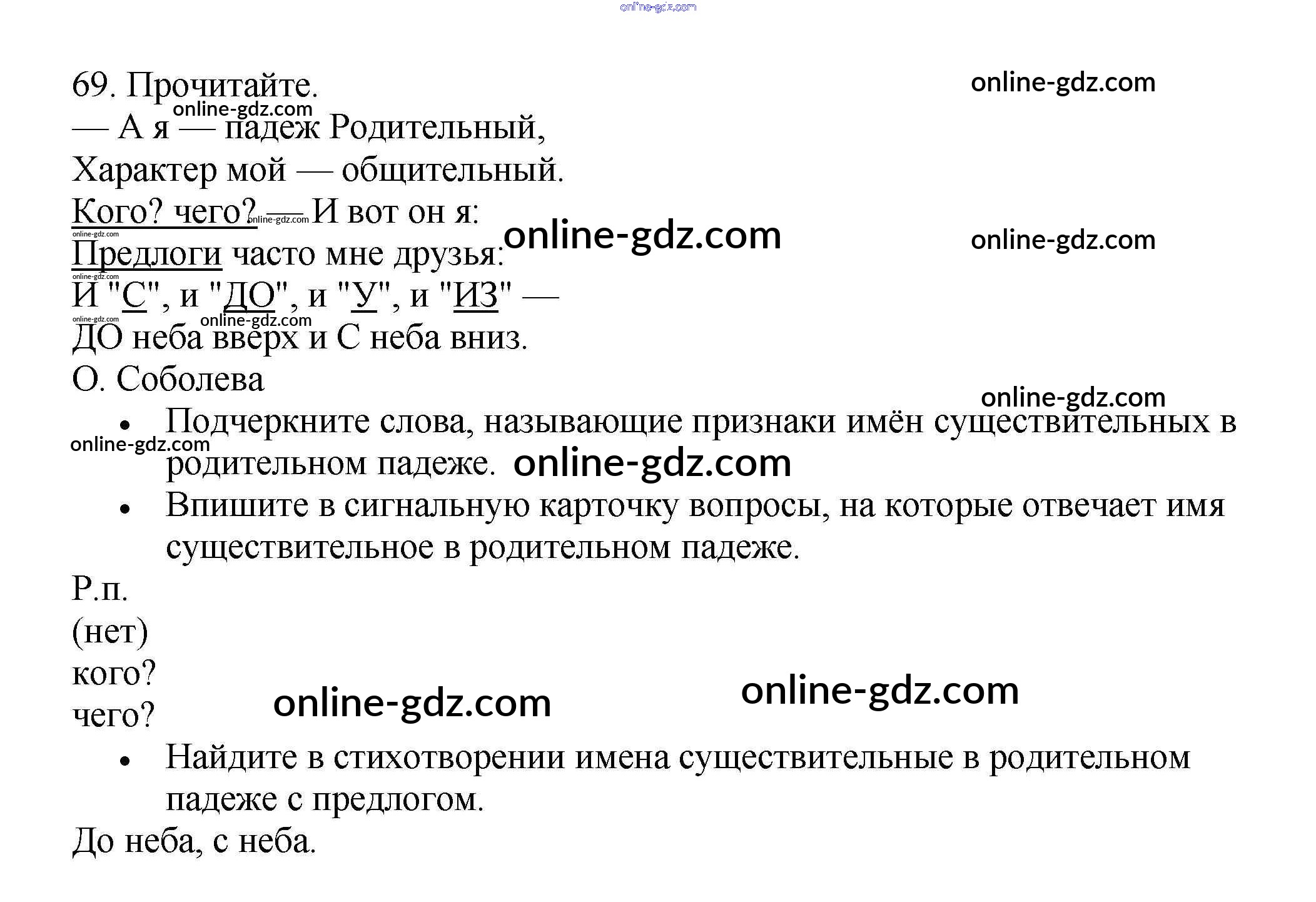 Готовые домашние задания по Русскому языку за 3 класс Рабочая тетрадь Канакина Школа России 2012 - Часть 2. Упражнения 69