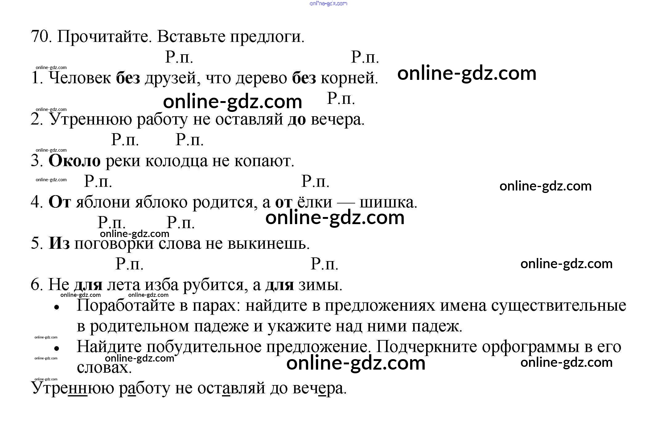 Готовые домашние задания по Русскому языку за 3 класс Рабочая тетрадь Канакина Школа России 2012 - Часть 2. Упражнения 70