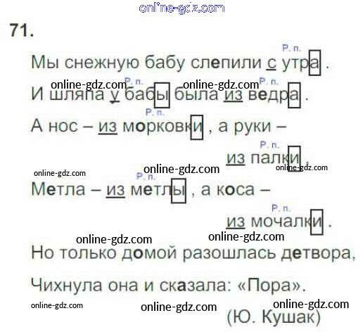 Готовые домашние задания по Русскому языку за 3 класс Рабочая тетрадь Канакина Школа России 2012 - Часть 2. Упражнения 71
