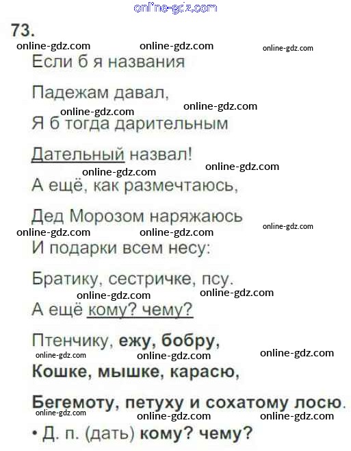 Готовые домашние задания по Русскому языку за 3 класс Рабочая тетрадь Канакина Школа России 2012 - Часть 2. Упражнения 73