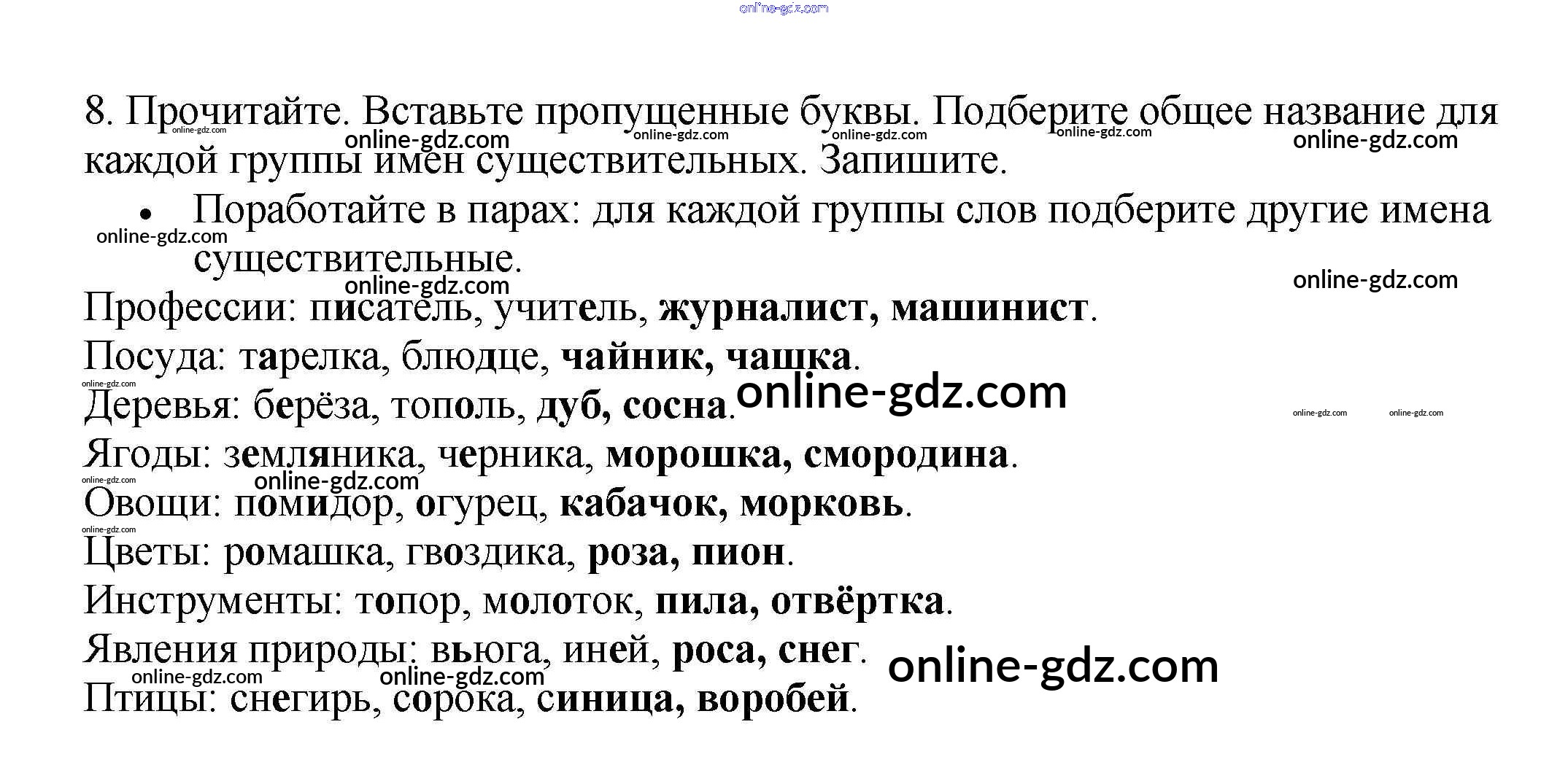 Готовые домашние задания по Русскому языку за 3 класс Рабочая тетрадь Канакина Школа России 2012 - Часть 2. Упражнения 8