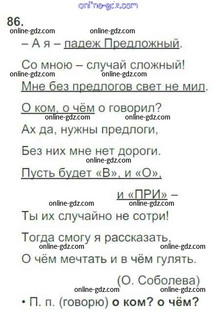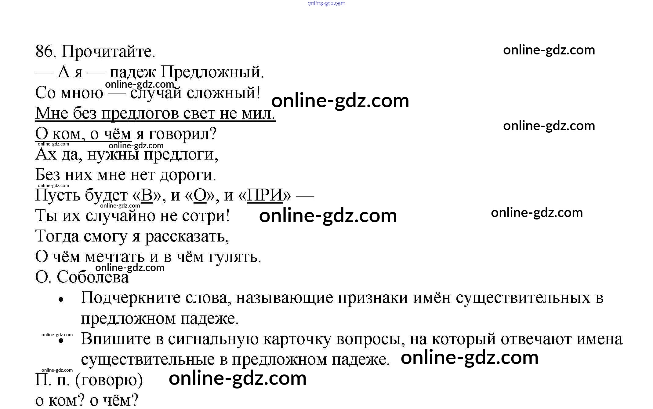 Готовые домашние задания по Русскому языку за 3 класс Рабочая тетрадь Канакина Школа России 2012 - Часть 2. Упражнения 86