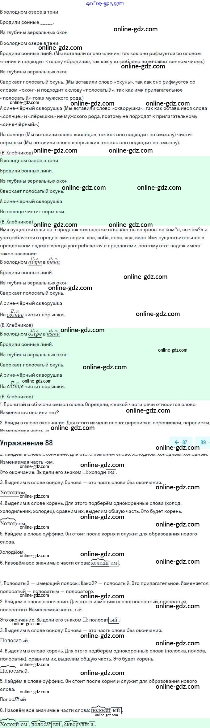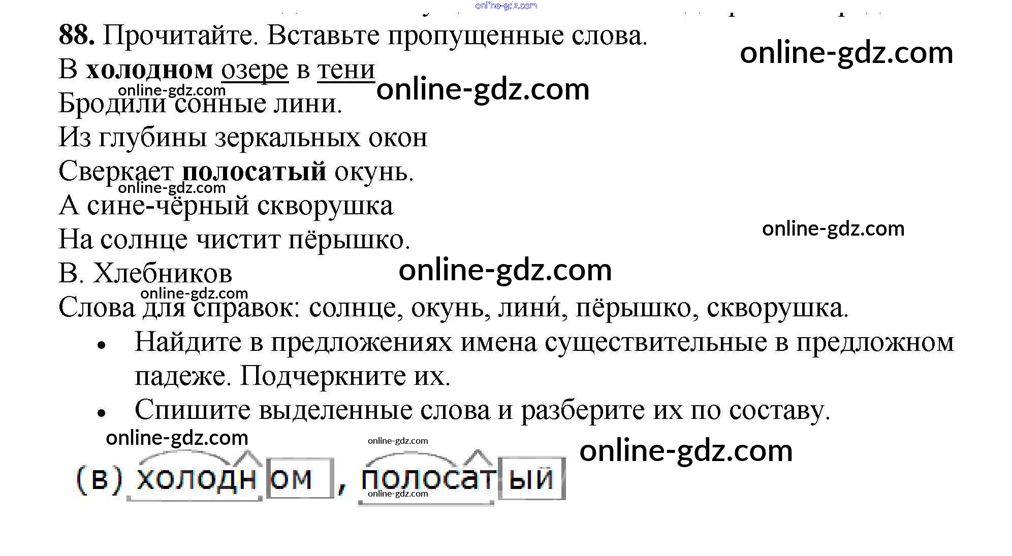 Готовые домашние задания по Русскому языку за 3 класс Рабочая тетрадь Канакина Школа России 2012 - Часть 2. Упражнения 88