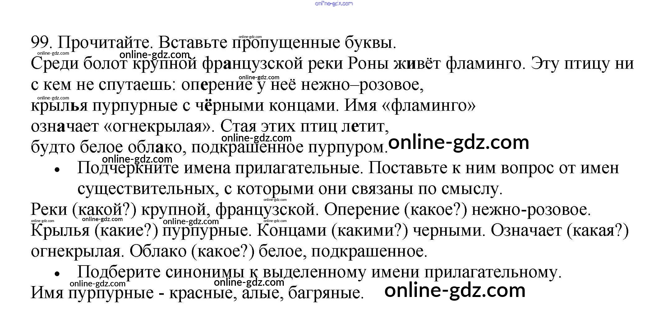 Готовые домашние задания по Русскому языку за 3 класс Рабочая тетрадь Канакина Школа России 2012 - Часть 2. Упражнения 99