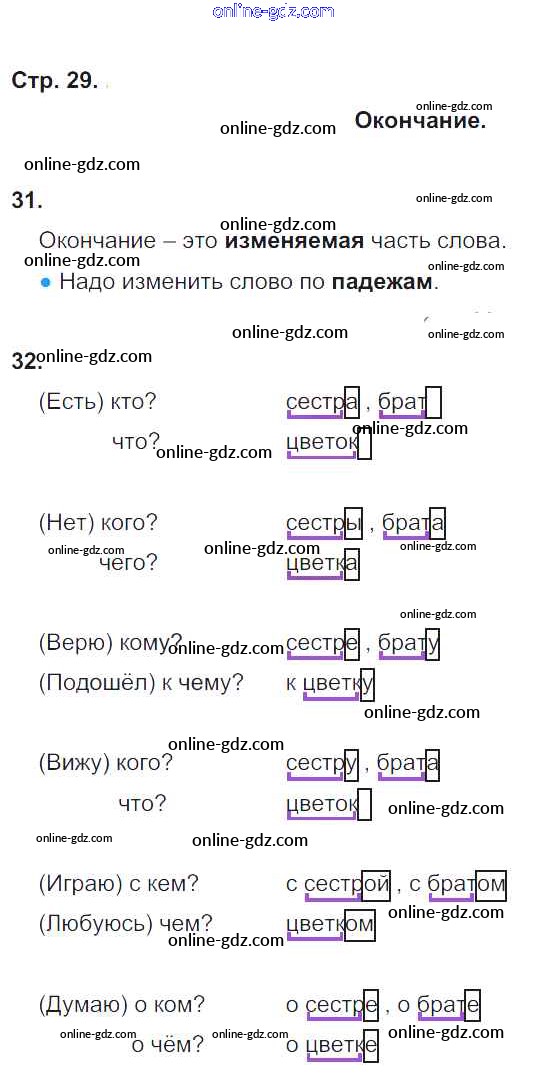 Готовые домашние задания по Русскому языку за 3 класс Рабочая тетрадь Рамзаева, Савинкина 2020 - Часть 1. Страницы 29