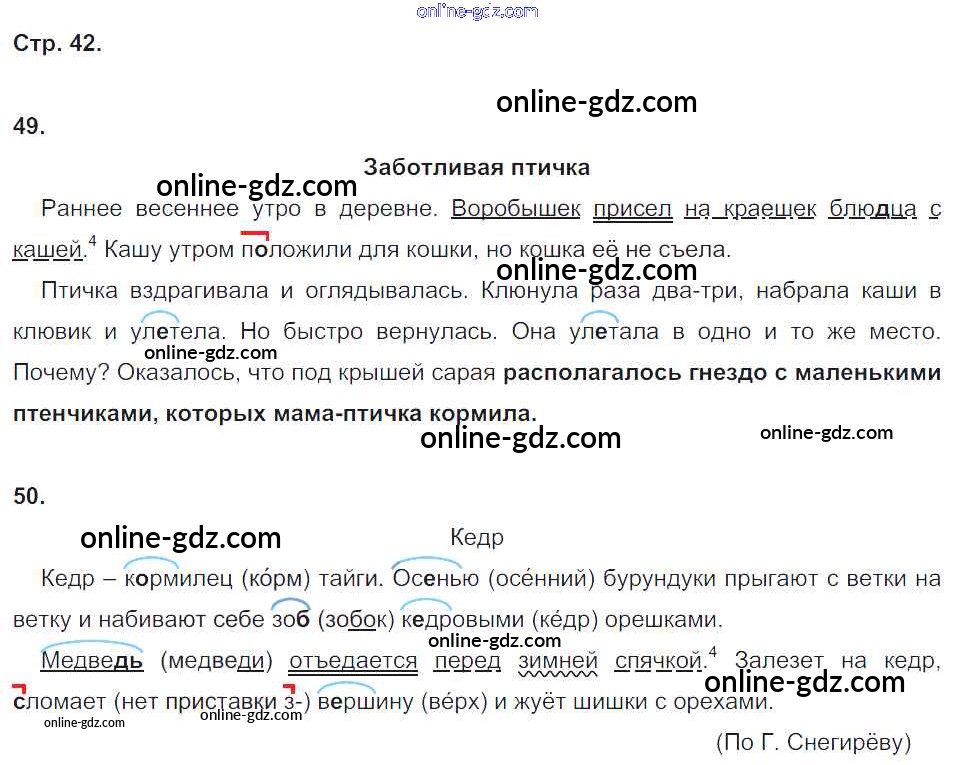 Готовые домашние задания по Русскому языку за 3 класс Рабочая тетрадь Рамзаева, Савинкина 2020 - Часть 1. Страницы 42