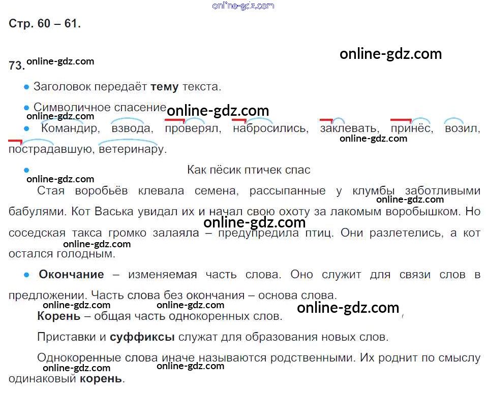 Готовые домашние задания по Русскому языку за 3 класс Рабочая тетрадь Рамзаева, Савинкина 2020 - Часть 1. Страницы 61