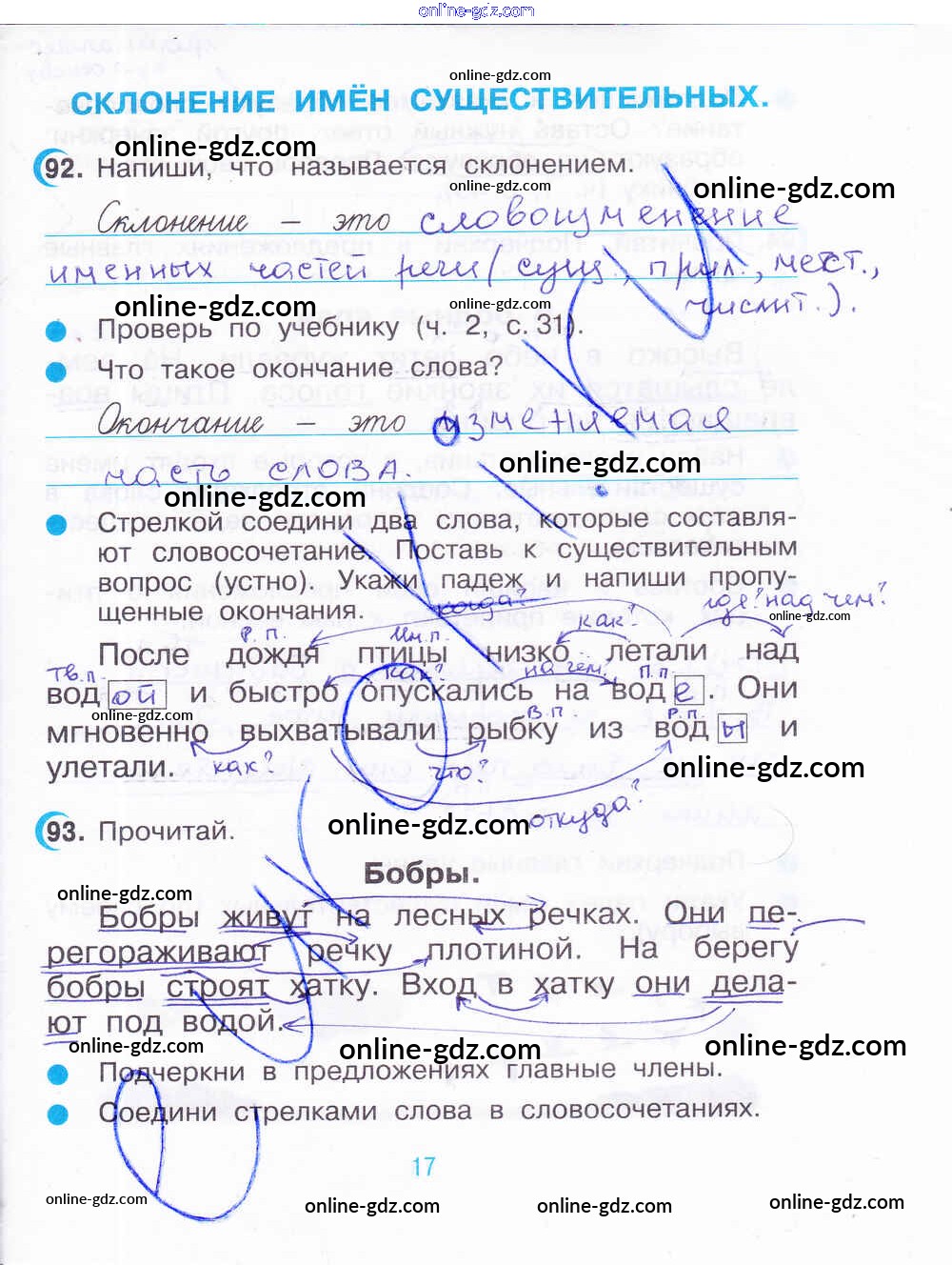 Готовые домашние задания по Русскому языку за 3 класс Рабочая тетрадь Рамзаева, Савинкина 2020 - Часть 2. Страницы 17