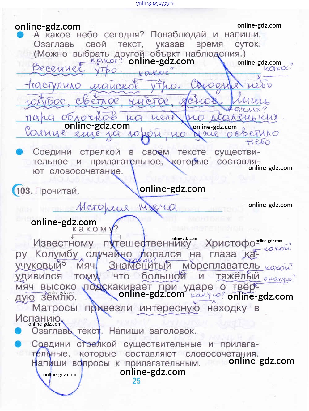 Готовые домашние задания по Русскому языку за 3 класс Рабочая тетрадь Рамзаева, Савинкина 2020 - Часть 2. Страницы 25