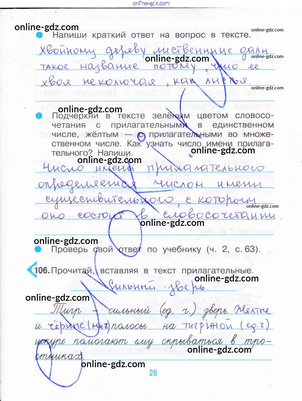 Готовые домашние задания по Русскому языку за 3 класс Рабочая тетрадь Рамзаева, Савинкина 2020 - Часть 2. Страницы 28