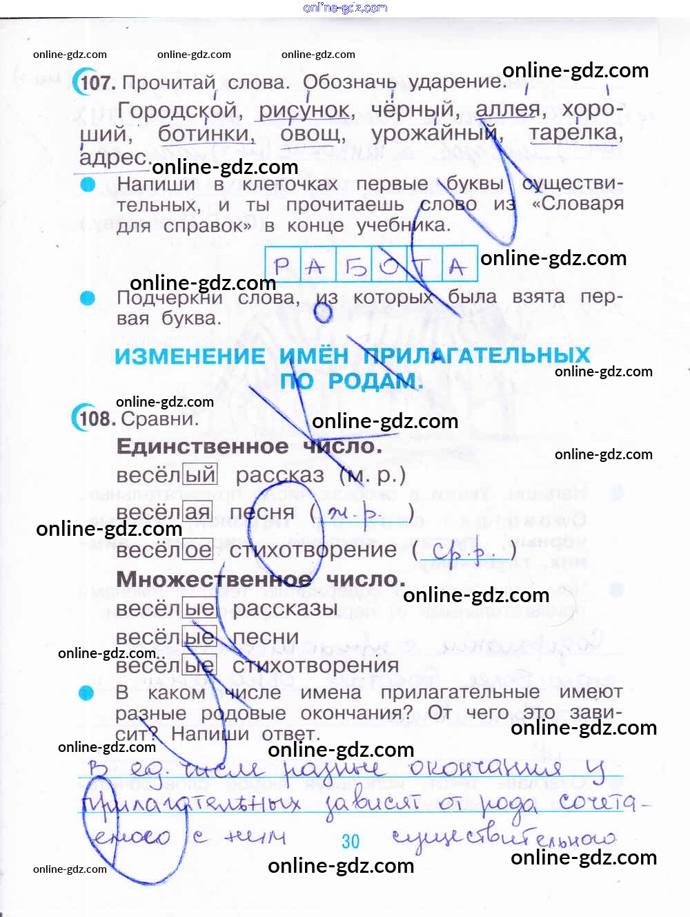 Готовые домашние задания по Русскому языку за 3 класс Рабочая тетрадь Рамзаева, Савинкина 2020 - Часть 2. Страницы 30