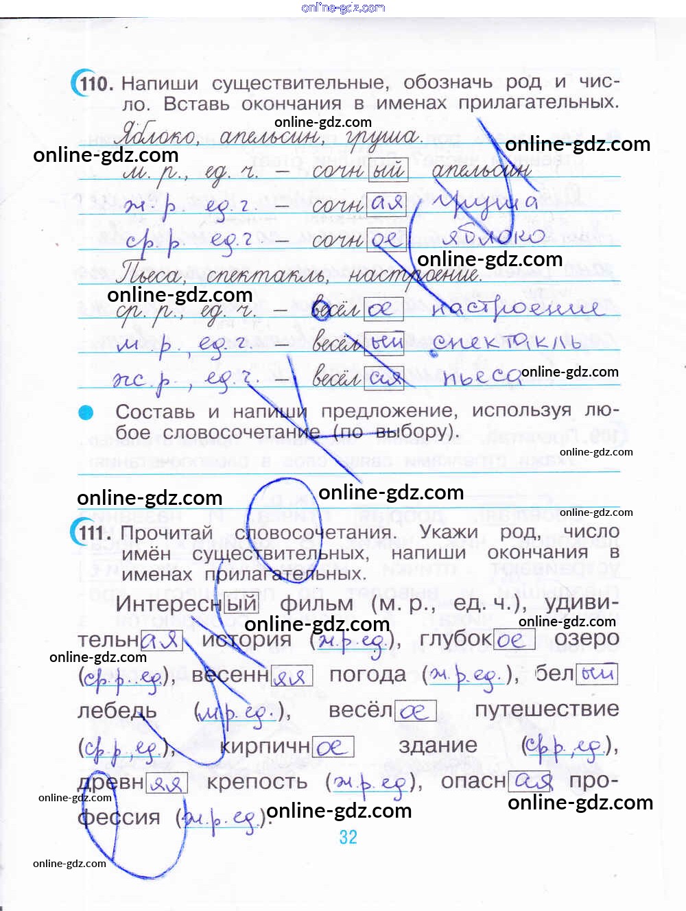 Готовые домашние задания по Русскому языку за 3 класс Рабочая тетрадь Рамзаева, Савинкина 2020 - Часть 2. Страницы 32