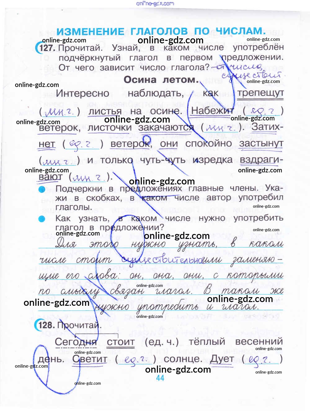 Готовые домашние задания по Русскому языку за 3 класс Рабочая тетрадь Рамзаева, Савинкина 2020 - Часть 2. Страницы 44