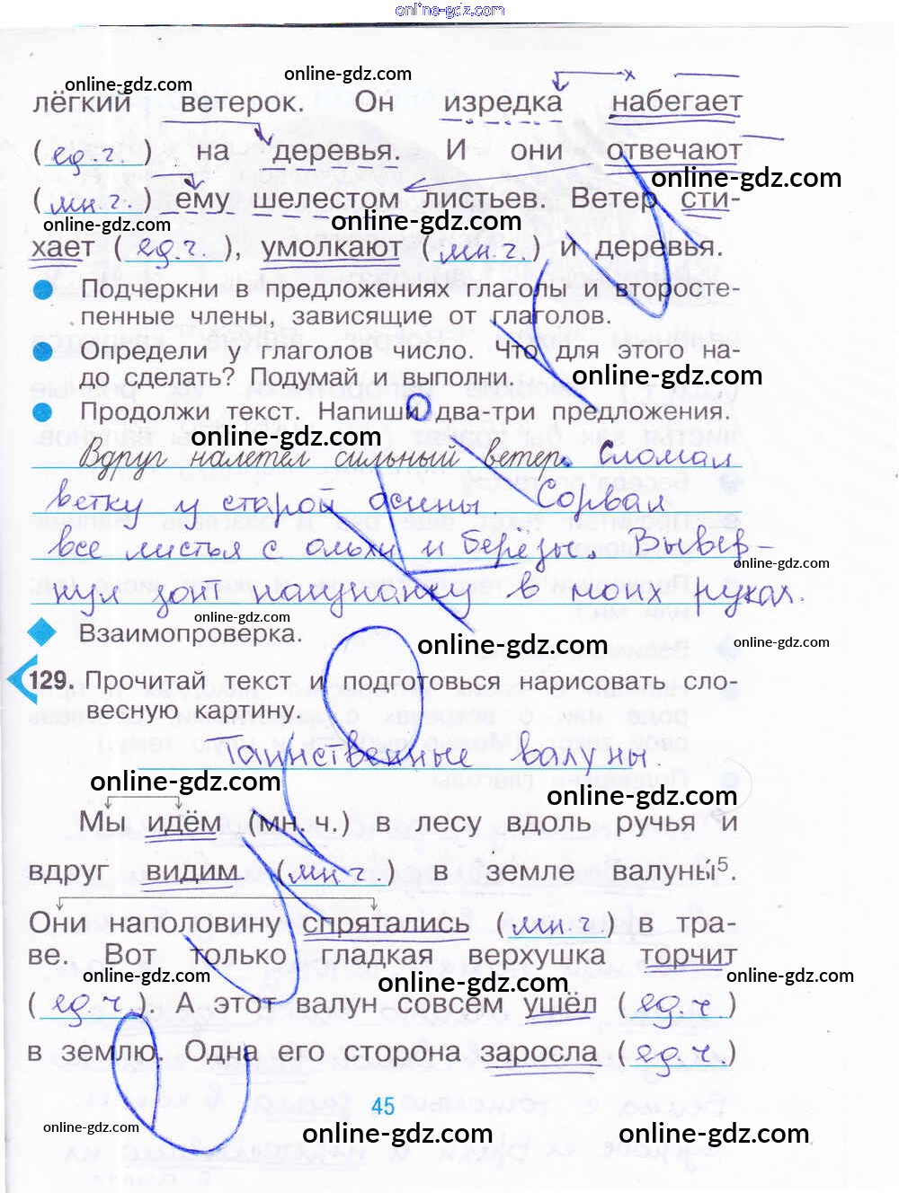 Готовые домашние задания по Русскому языку за 3 класс Рабочая тетрадь Рамзаева, Савинкина 2020 - Часть 2. Страницы 45