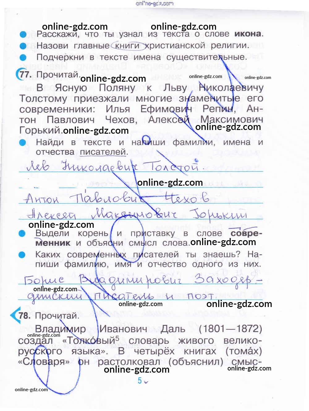 Готовые домашние задания по Русскому языку за 3 класс Рабочая тетрадь Рамзаева, Савинкина 2020 - Часть 2. Страницы 5