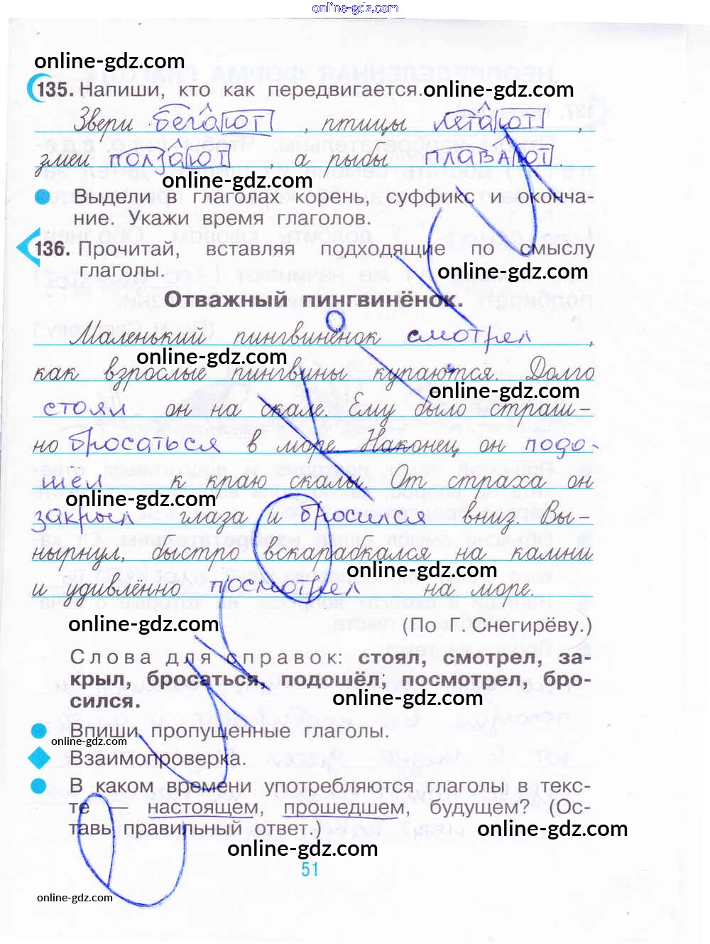 Готовые домашние задания по Русскому языку за 3 класс Рабочая тетрадь Рамзаева, Савинкина 2020 - Часть 2. Страницы 51