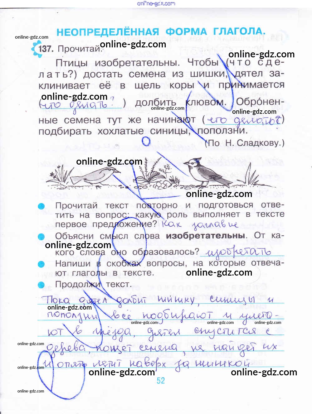 Готовые домашние задания по Русскому языку за 3 класс Рабочая тетрадь Рамзаева, Савинкина 2020 - Часть 2. Страницы 52