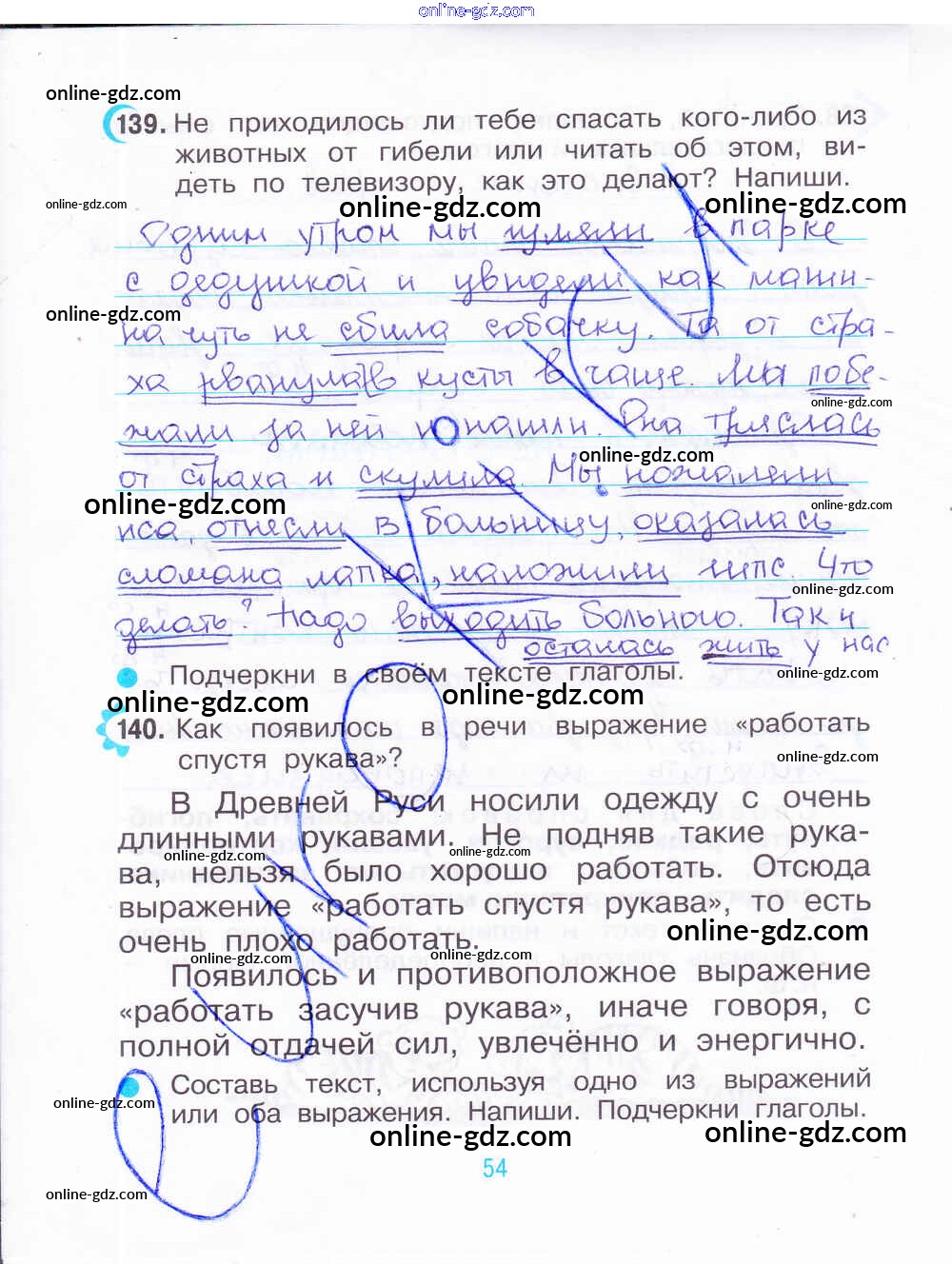Готовые домашние задания по Русскому языку за 3 класс Рабочая тетрадь Рамзаева, Савинкина 2020 - Часть 2. Страницы 54