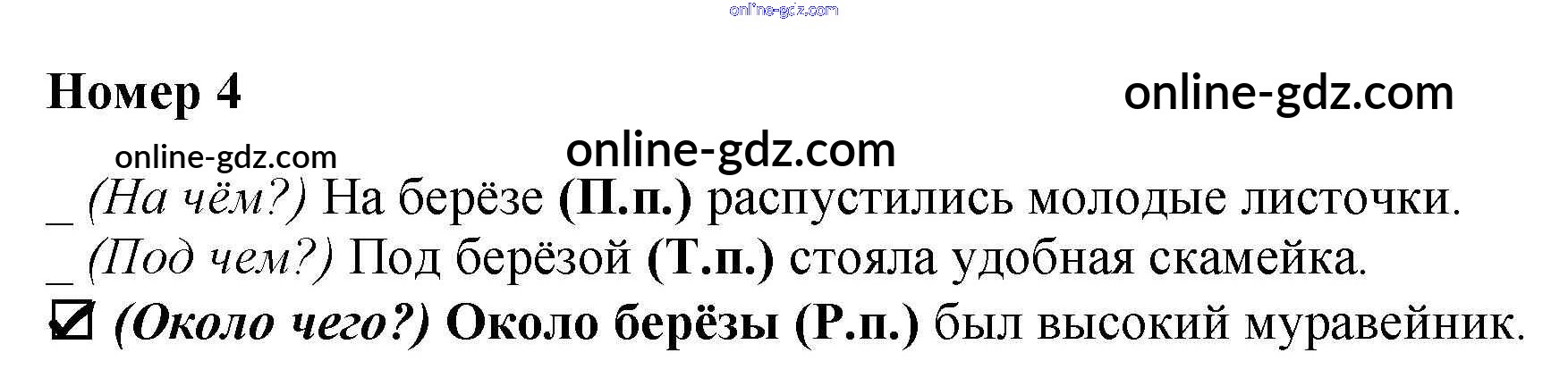 Готовые домашние задания по Русскому языку за 3 класс Тесты Тихомирова УМК 2014 - Вариант 2 Падеж имен существительных 4