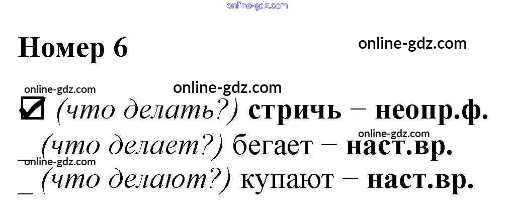 Готовые домашние задания по Русскому языку за 3 класс Тесты Тихомирова УМК 2014 - Вариант 1 Форма глагола 6