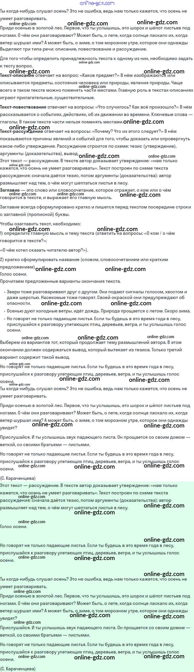 Готовые домашние задания по Русскому языку за 3 класс Учебник Иванов, Евдокимова Начальная школа XXI века 2022 - Урок 5. Повторяем типы текстов 2