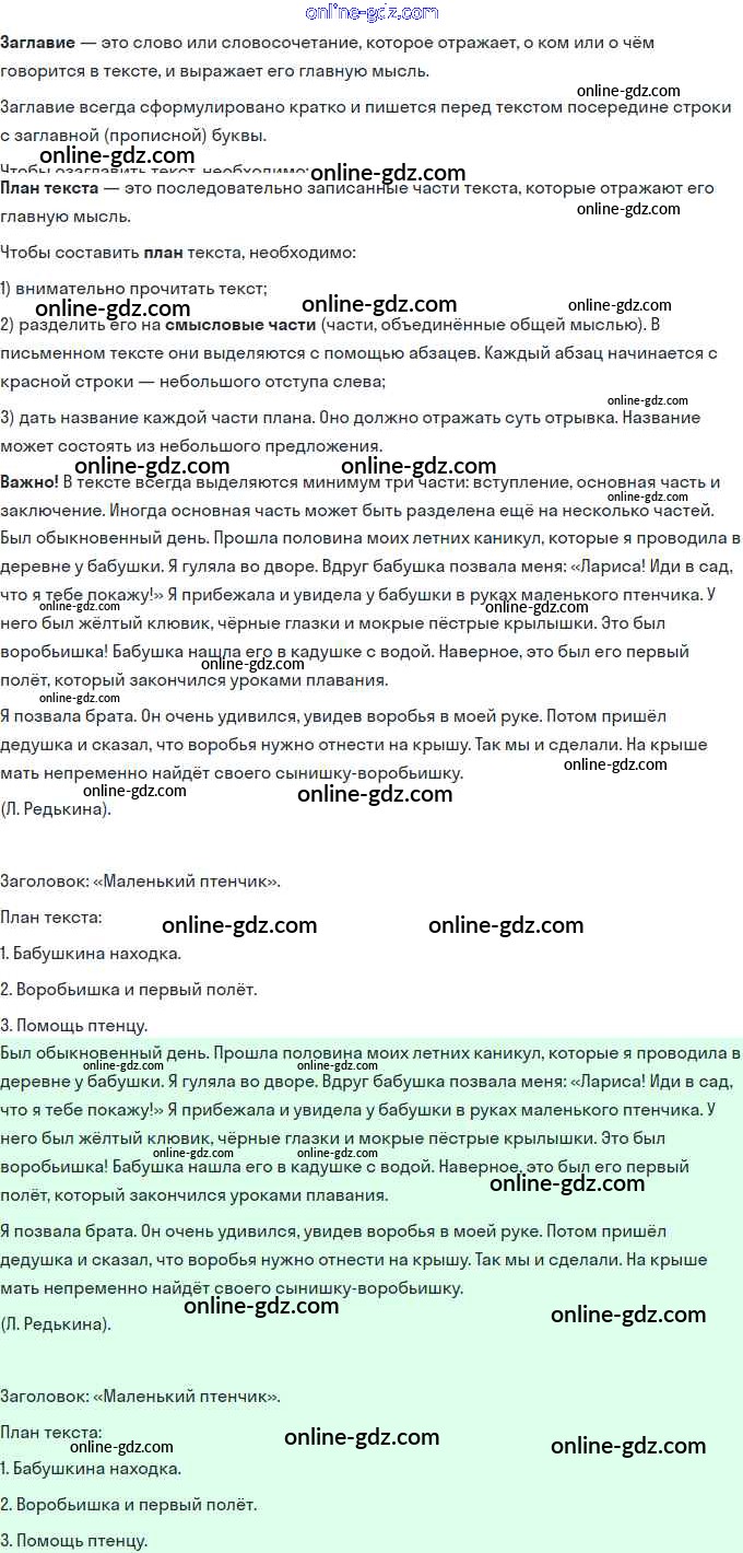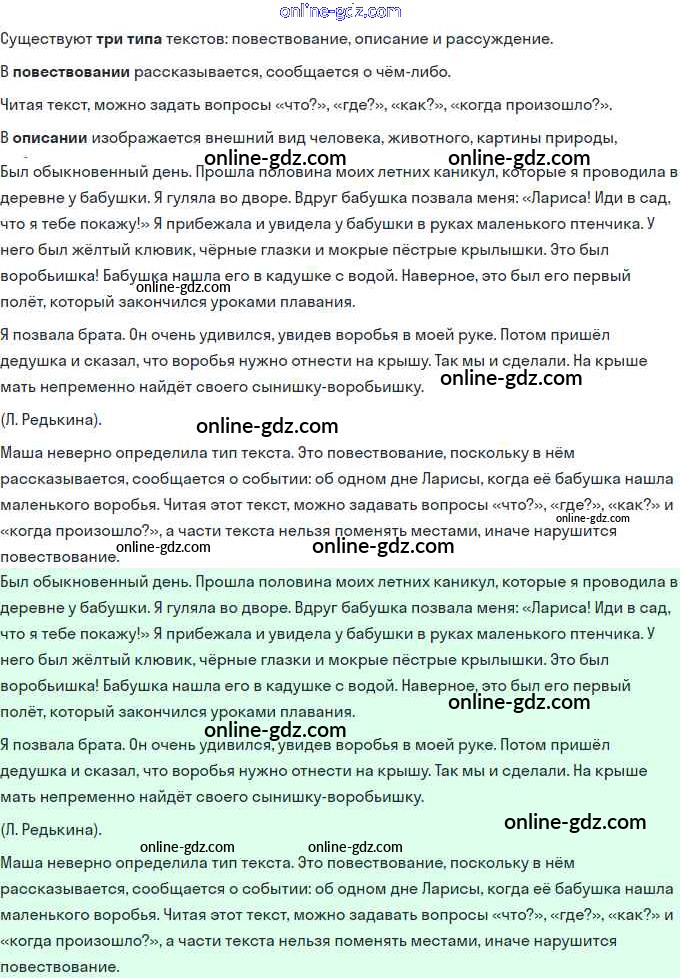 Готовые домашние задания по Русскому языку за 3 класс Учебник Иванов, Евдокимова Начальная школа XXI века 2022 - Урок 10. Повторяем типы текстов 2